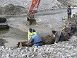 | • | Buhnen Buhnen werden in Gewässern quer zur Strömung errichtet. Sie reichen vom Ufer ins Gewässerbett, nehmen jedoch nicht die gesamte Breite ein. Während in kleinen Gewässern auch lebende Buhnen aus Bäumen errichtet werden können, werden in großen Flüssen vor allem massive Buhnen aus Wasserbausteinen errichtet. Buhnen erhöhen die Struktur- und Substratvielfalt, fördern die Entwicklung von Still- und Kehrwasserbereichen, unterschiedliche Strömungsgeschwindigkeiten und unterschiedlich („sortierte“) Sedimentablagerungen. |